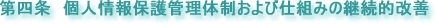 | 当社では、個人情報保護に関する管理の体制と仕組みについて継続的改善を実施いたします。 |